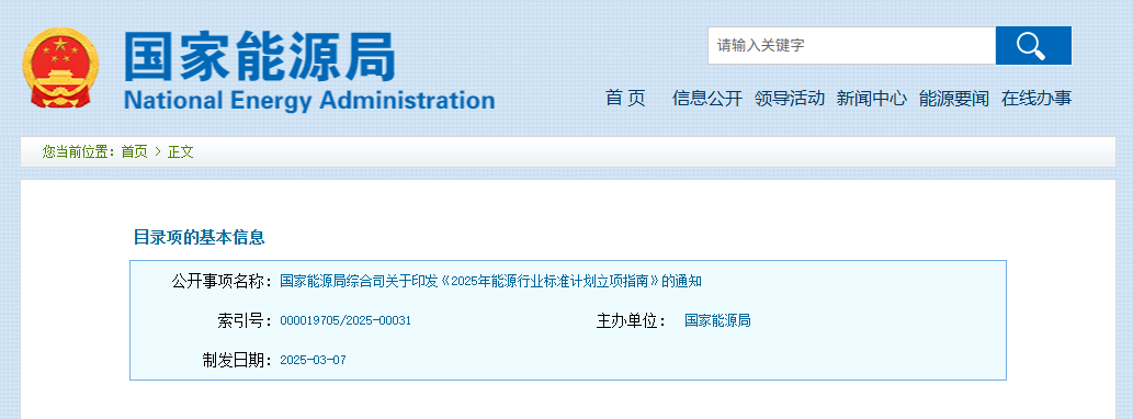 国家能源局综合司关于印发《2025年能源行业标准计划立项指南》的通知